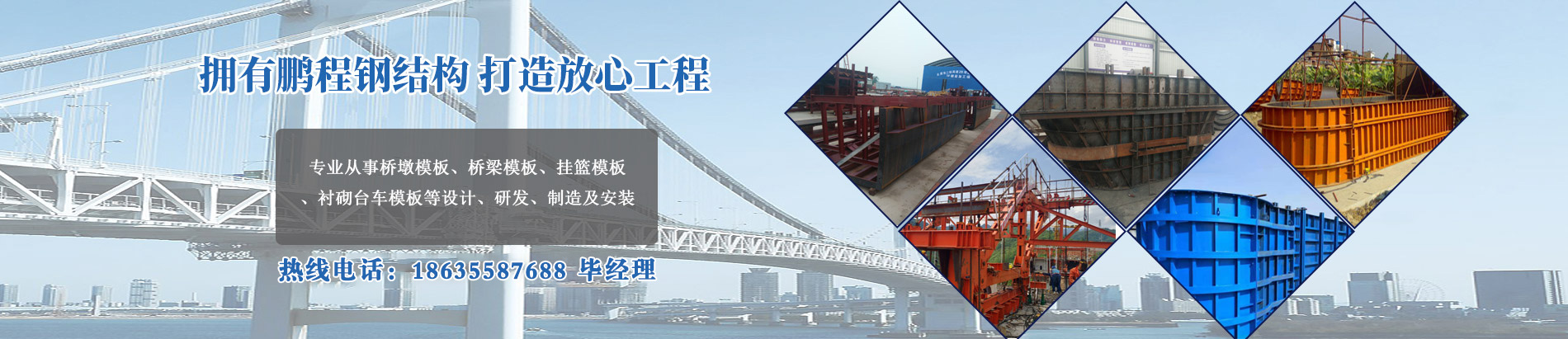 运城鹏程钢结构股份有限公司位于山西省运城市临猗县东张镇,占地面积1.3万平方米。多年来,一直参与国家重点铁路、公路及地铁项目的建设,主要承揽桥墩模板、桥梁模板、挂篮模板、衬砌台车模板等设计、制作、安装及钢支撑、钢拱架、钢格栅、钢筋笼、网片的加工制作,是一家集设计、生产、安装及租赁为一体的实体企业。通过多年来的努力,工厂锻炼和培养了一批素质高、能吃苦、能作战的专业技术队伍,现有高等工程师2人,专业技术工程师5人,普通技术干部10人,专业设备操作人员60余人。厂内技术力量雄厚,设备齐全,场内有原材料存放车间、下料车间、结构件拼装车间、组焊车间、机加工车间、抛丸打磨车间及成品存放车间...